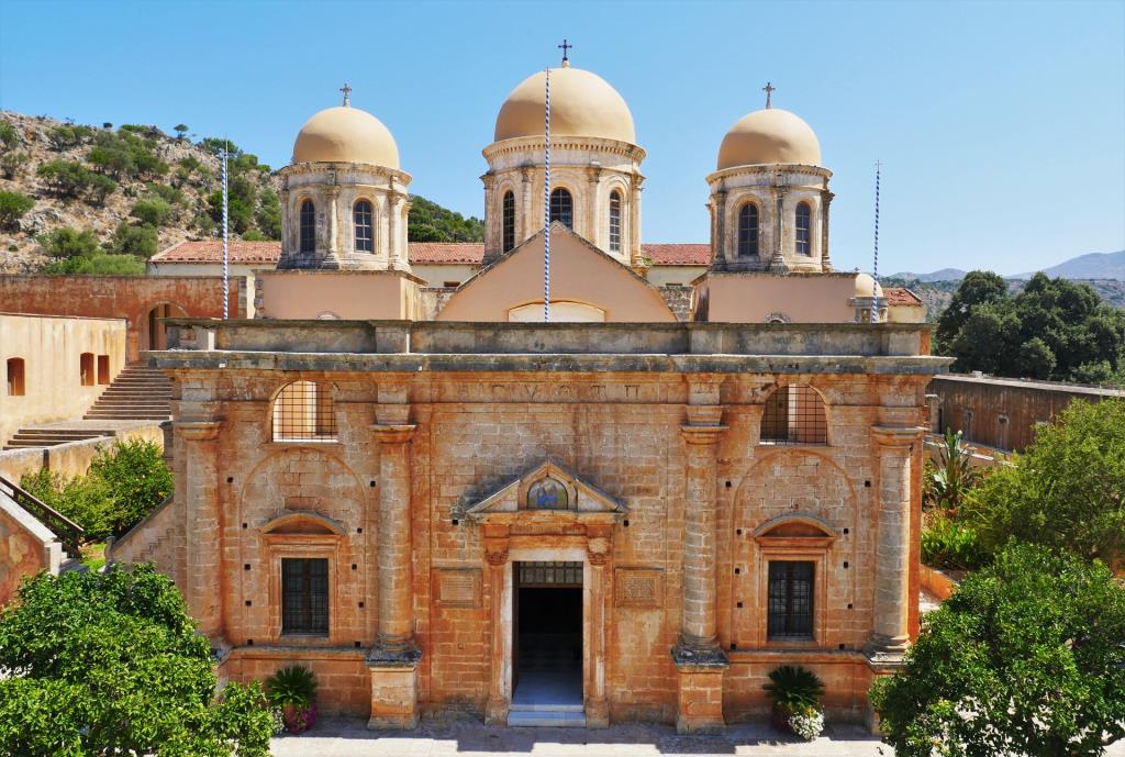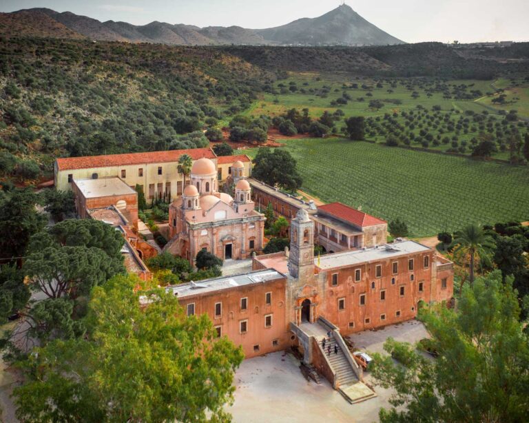 The Monastery of Agia Triada (Holy Trinity), or Tzagarolon Monastery as it is also known, is one of the most impressive monasteries one will see in Crete. Visitors will see an incredibly well-preserved and vibrant monastery that hosts a small museum and produces and exports organic olive oil, wine, honey, vinegar and olive oil soap of unique quality.